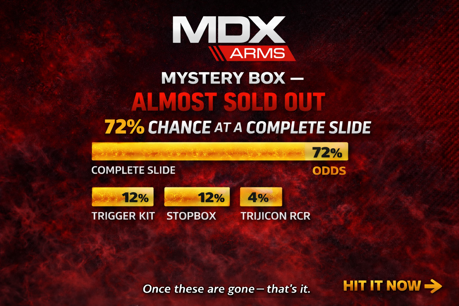 SALE Quick view Details MDX Arms G19 Combat with RMR Cut Complete Slide MSRP: $350.00 Was: $330.00 Now: $230.00 Choose Options